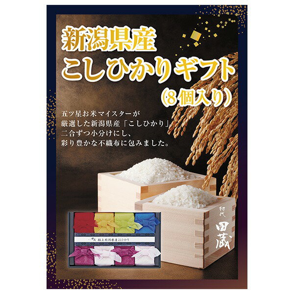 初代田蔵 新潟の極み 特選新潟県産こしひかりギフト(8個入)「五ツ星マイスター」が厳選したお米の名産地新潟県で太陽と大地の恵みを受けながら育ったお米をひとつひとつ丁寧に不燃布で包みました。