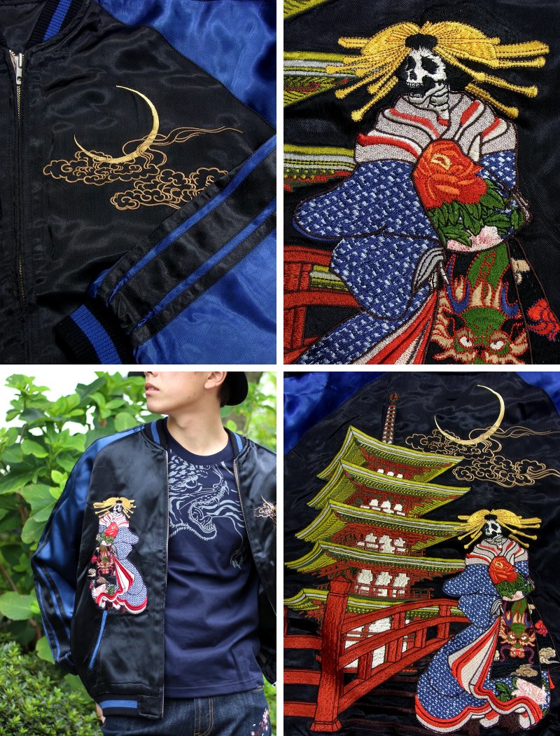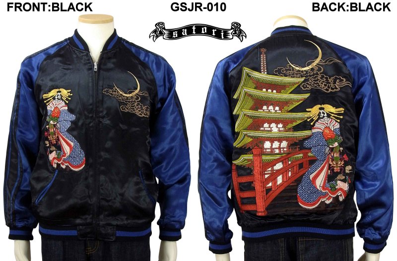 五重塔髑髏刺繍スカジャン GSJR-010 satori(さとり) 和柄【送料無料】
