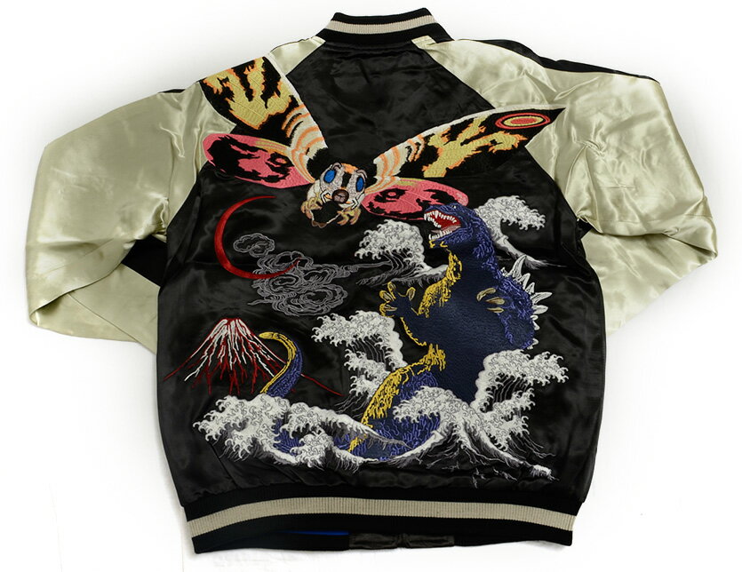 Mothra VS GODZILLA Embroidered Reversible Souvenir jacket モスラ対ゴジラ 刺繍 リバーシブル スカジャン 1961年(昭和36年)の映画『モスラ』を始めとする東宝製作の怪獣映画に登場し、 東宝がゴジラ、ラドンに続く怪獣キャラクターとして注力した、 構想3年、製作費2億円(当時)、製作延日数200日をかけた日米合作の大作特撮映画。